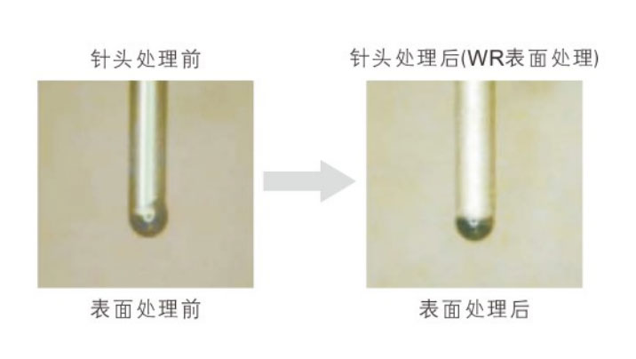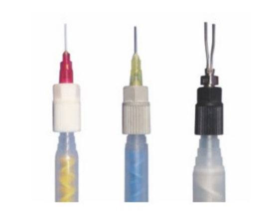 精準(zhǔn)點膠的秘訣在于抑制出膠量不均,材料拉絲,前 端爬膠等現(xiàn)象,進一步實現(xiàn)高品質(zhì)的點膠。 在點膠針頭前端及內(nèi)徑進行特殊材料的表面處理,可 以實現(xiàn)更精準(zhǔn)的點膠。請依照使用目的與用途來選擇 表面處理的種類。